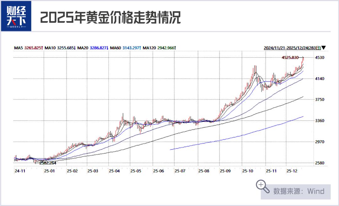 没想到黄金短暂回调后再创新高,1223日,现货黄金首次突破每盎司4490美元大关,有媒体指出这是今年以来第50天刷新历史纪录。1224日,黄金价格又以最高4525美元/盎司的数据向市场证明,金价没有最高,只有更高。