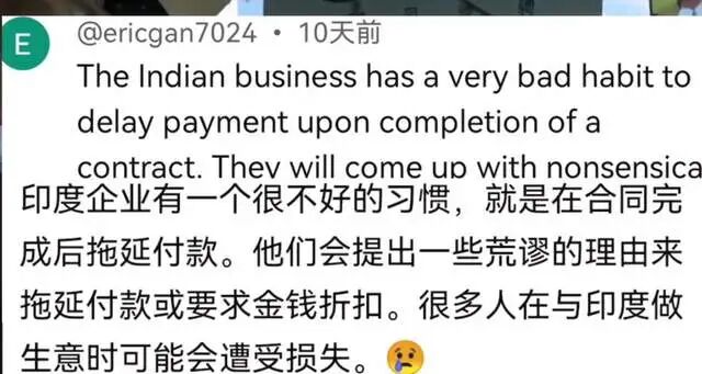 与印度做生意,可以卖产品,可以轻资产布局,但不要重资产投资,但即便只卖产品,依然要自己掌握好反向风控的能力。全球各国外贸人都清楚,印度拖欠尾款只是常规操作,甚至一边欠着钱,一边通过法院起诉索赔还能胜诉。