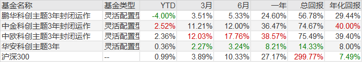 如上文提到的几只侧重债券资产的科创主题产品,华安基金业绩最差。截至3月初华安科创主题总回报为14.33%,而中欧科创主题的收益是75%,中金科创主题是74%,鹏华科创主题是56%,华安科创主题产品至少跑输42%。